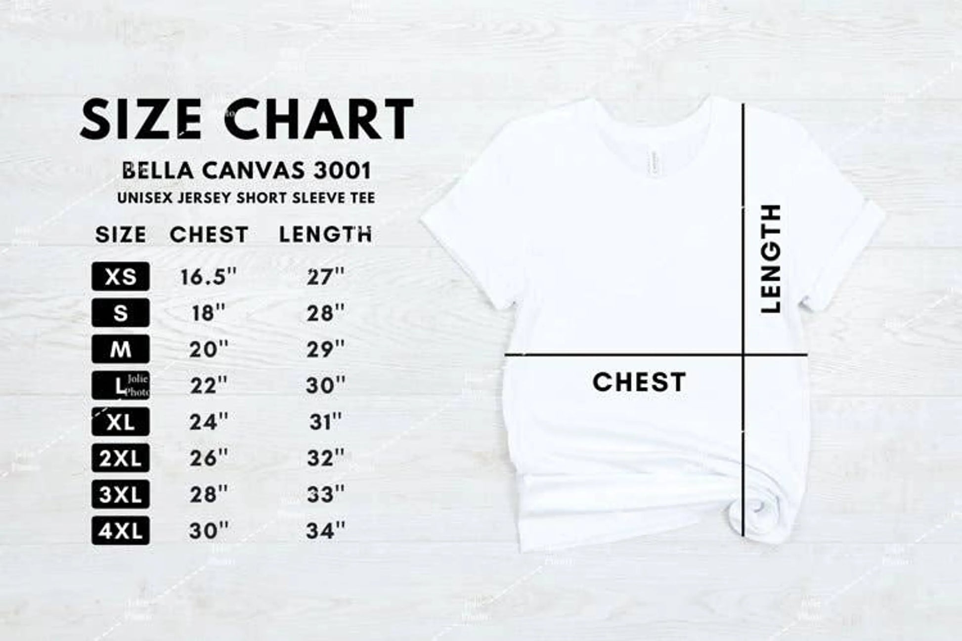 Custom-made shirt applied on a Comfy Bella Canvas or Gildan brand shirt with a true-to-size unisex fit!